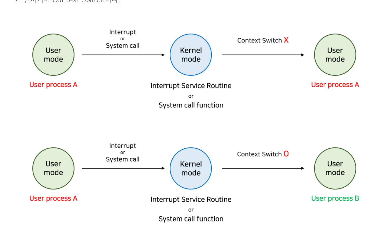 결국 프로세스가 실행되고 있다가 interuppt 발생해서 CPU를 한 Process에서 다른 Process . 로넘겨주는 과정.