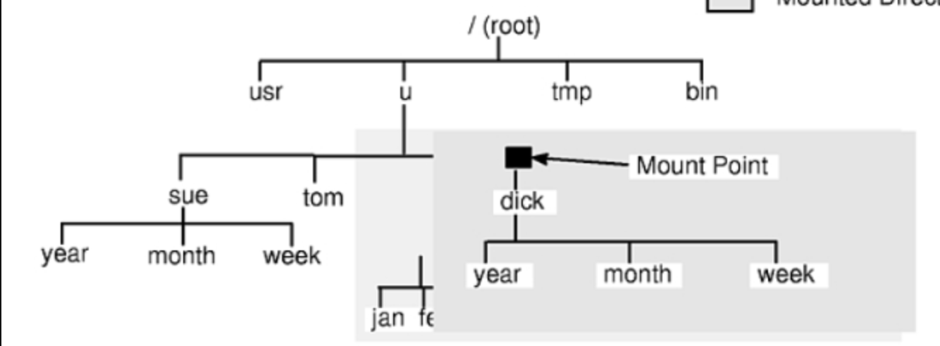 한 저장 장치 파일 시스템에서 다른 저장 장치 파일 시스템에 접근할 수 있도록 파일 시스템을 편입 시키는 작업