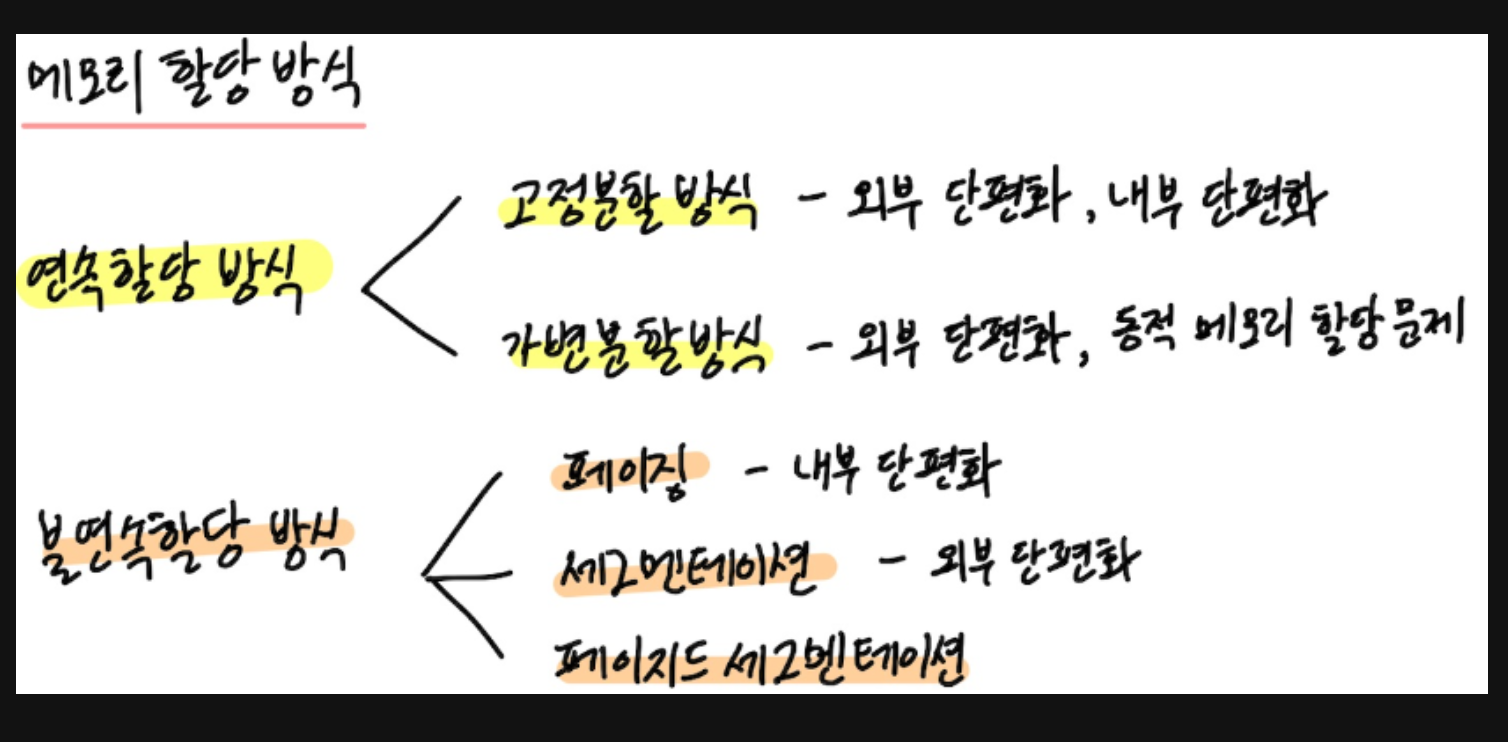 프로세스에 연속적인 메모리 공간을 할당하는 방식