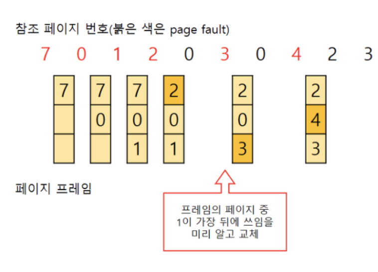 앞으로 가장 오랫동안 사용되지 않을 페이지 교체하는것