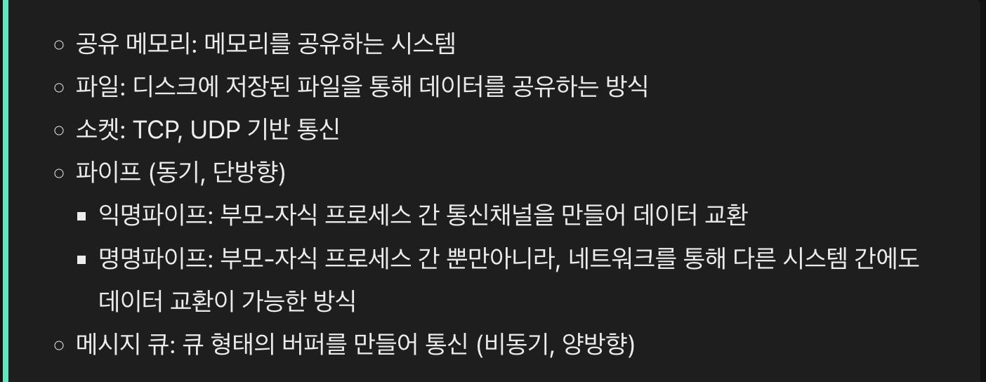 프로세스는 커널이 제공하는 IPC 설비를 이용해서 통신가능.