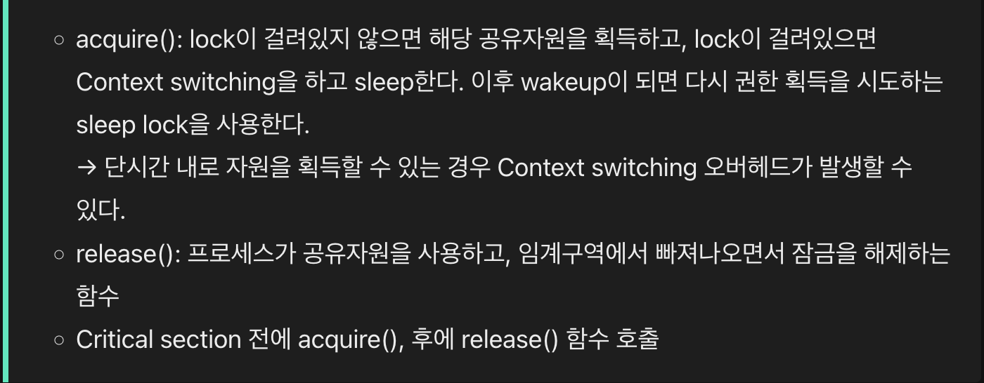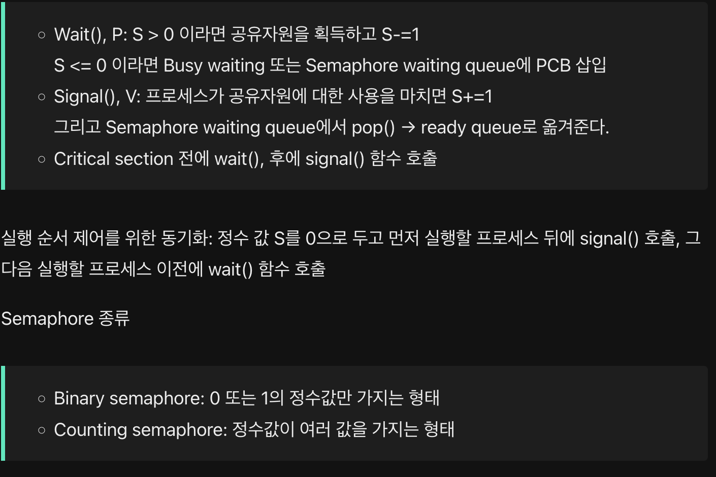 선점을 통한 회복 - 교착 상태가 해결될 떄까지 하나의 프로세스에 자원을 몰아주는 방식으로 프로세스를 선점하고 교착 상태 여부를 확인하기 위한 오버헤드가 발생할수 있다.