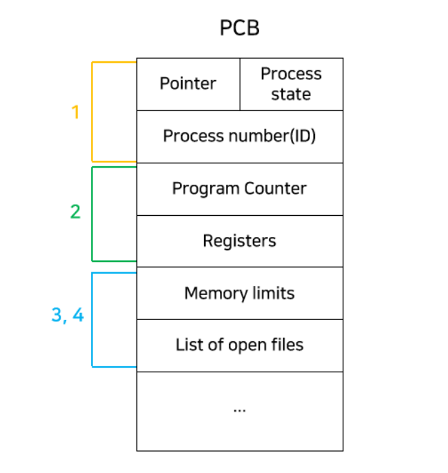 운영체제가 각 프로세스를 간리하기 위해. ㅡ로세스별로 보유하고 있는 자신의 정보 묶음이다.