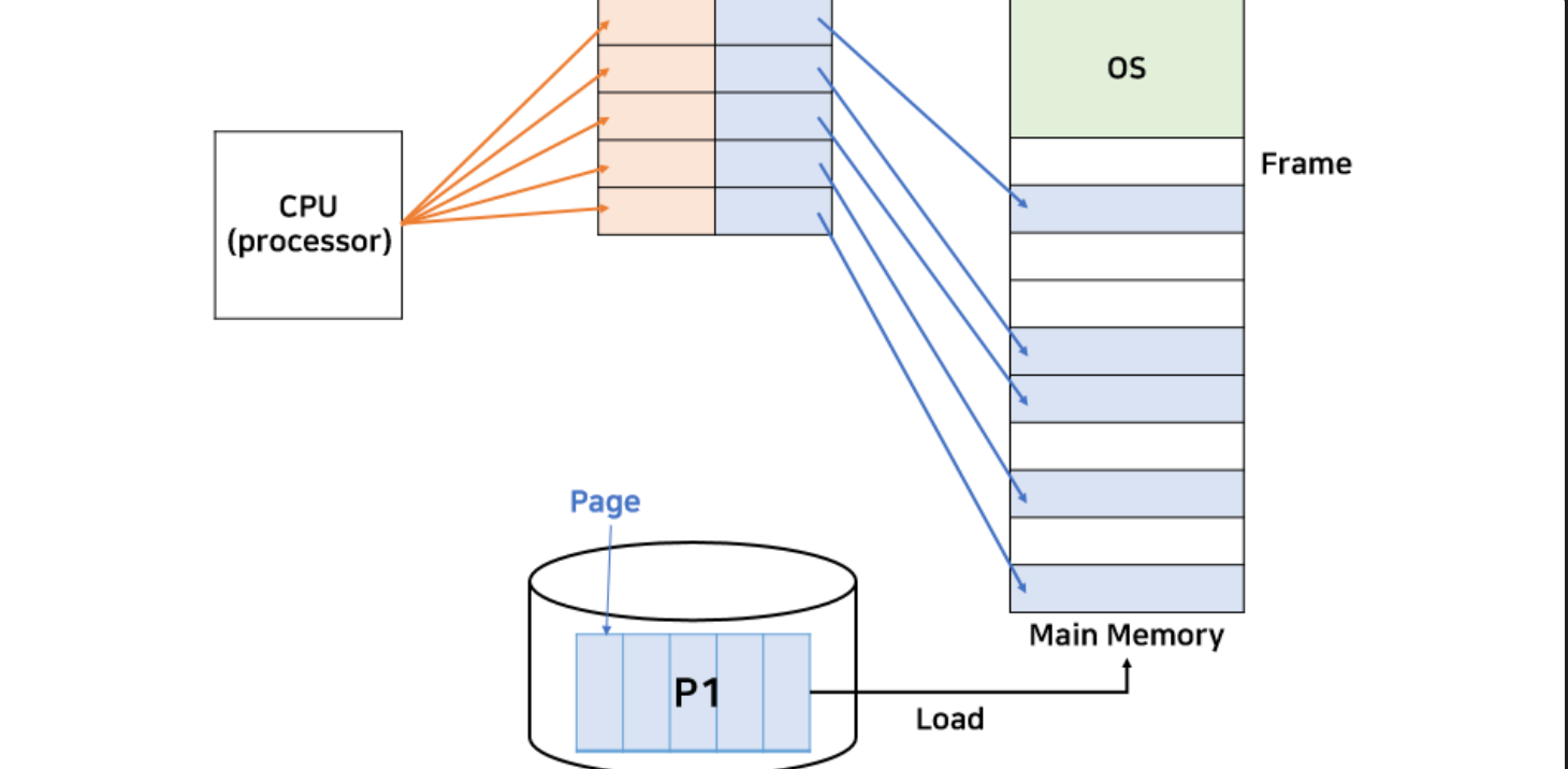 Paging 은 사용하지 않는 Frame을 Page에 옮기고 필요한 메모리를 페이지 단위로 프레임에 옮기는 방법이다.