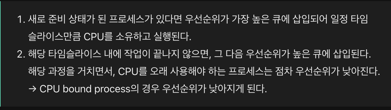 우선순위는 I/O 가 CPU 보다 높으며 우선순위는 PCB에 명시된다고 한다.