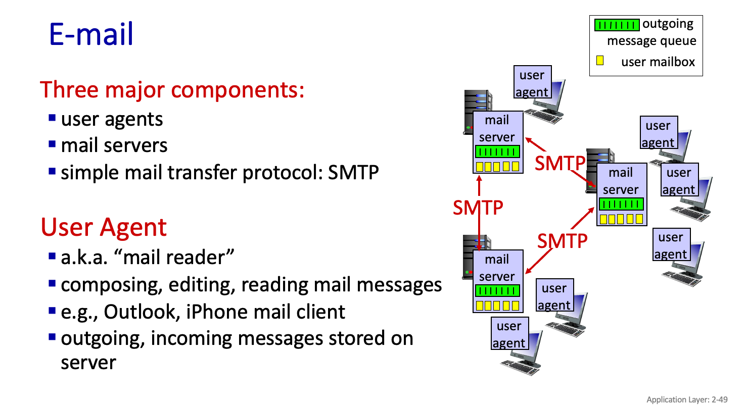 메일 보내기 클릭하면 Mail server로 전달이 된다. 받기하면 나한테 온 Mail 이 user agent 로 올라온 것이다. 메일 서버가 상대방 메일 서버한테 메일을 전달한다.