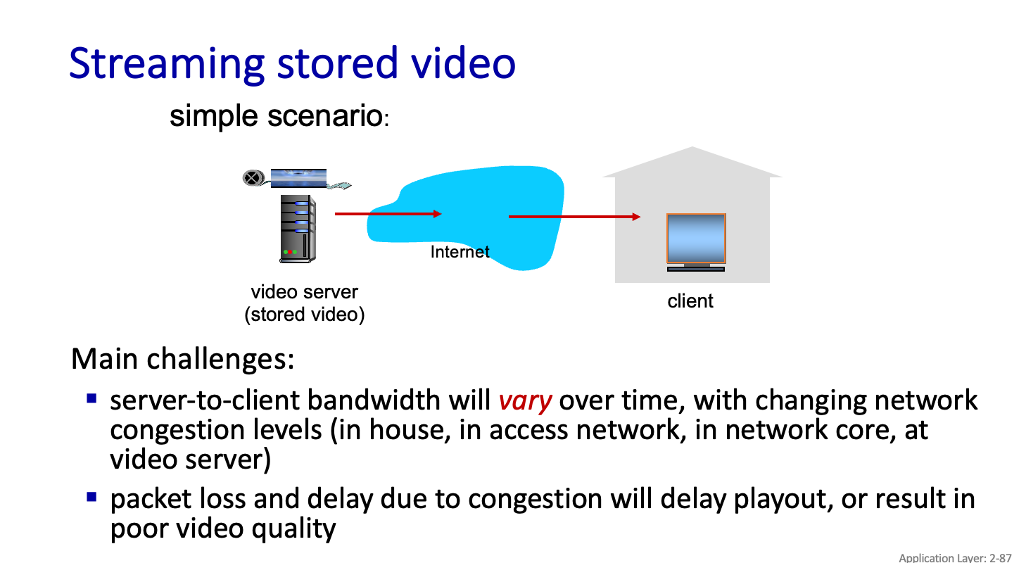 그래서 audio,video 를 나눠서 data rate 이 필요하다.throughput 이 정해져있다. 또한 Time sensitive 를 보면 알겠지만 빨리와야한다.