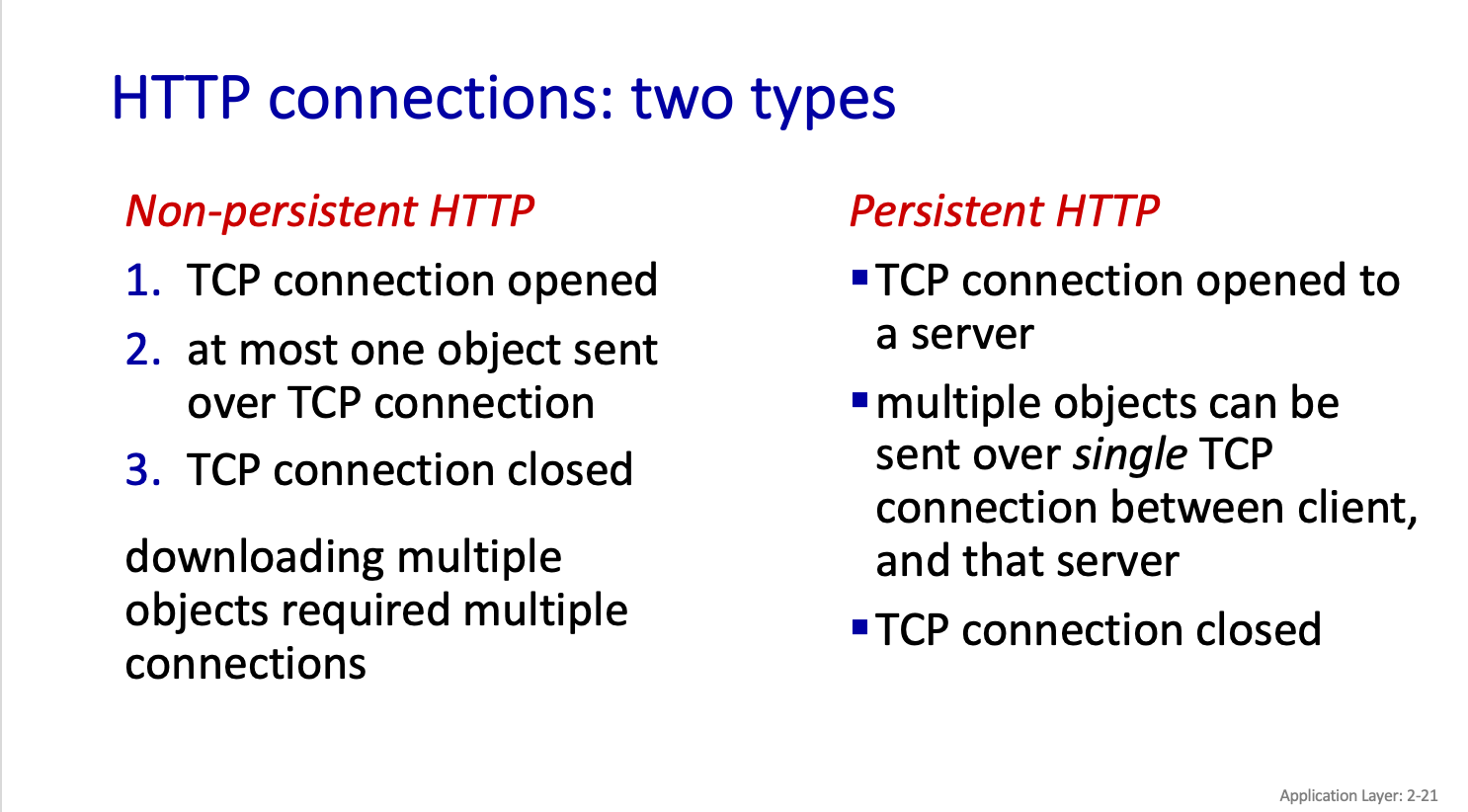 persistent는 non-persistent 와는 다르게 한번의 TCP connection 을 하나 열어두면 여러개의 object 를 받아올떄 당연하게 하나의 connection 을 잘 활용하면된다.