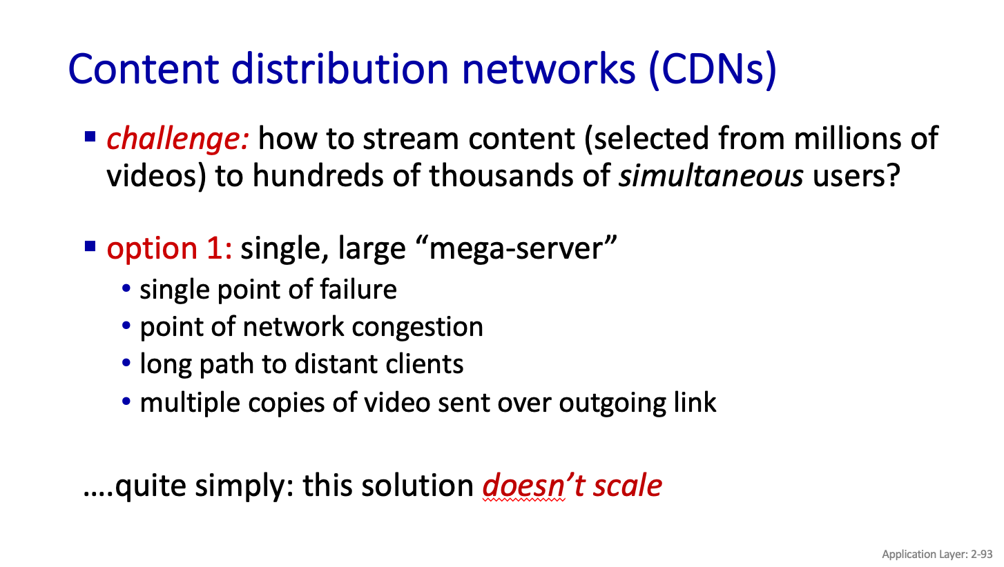 CDN Server 를 가급적 User 에게 가까이 위치 시켜야한다. 전 세계에 SErver를 둬야해서 설치를 너무 많이 한다.