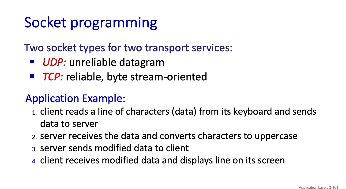 이말은 TCP는 보내는것과 받는걸 같게하는 reliable transport 인데 UDP 는 그냥 응용 단에 줘버린다.