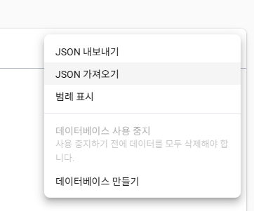 저장된 json 파일은 파이어베이스에서 JSON 가져오기를 통해 올릴 수 있다