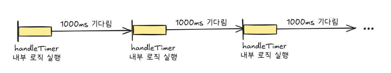 을 호출하는 경우 콜백 함수의 실행 시간만큼 다음 타이머 설정이 밀리게 된다.