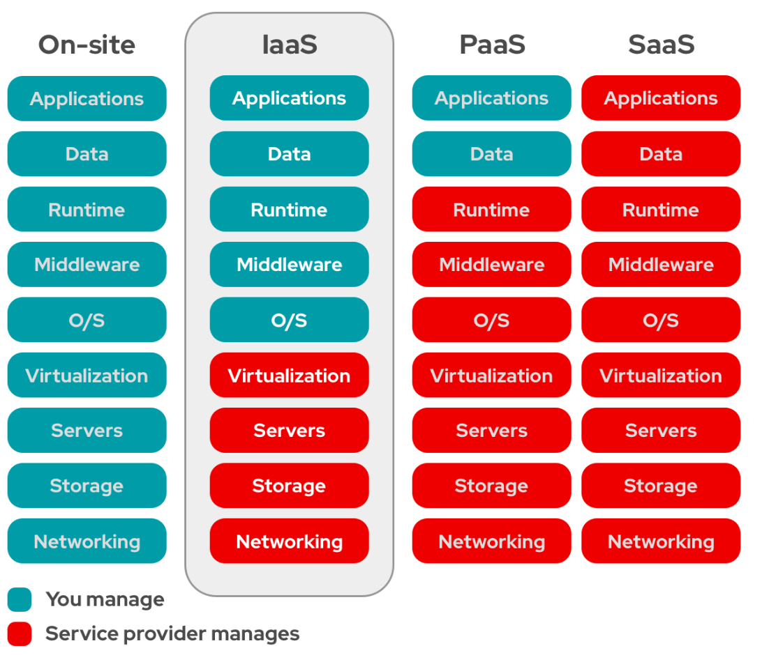 만약 온프레미스 서버 사용한다 생각하면 네트워킹부터 애플리케이션까지 다 구축해야 함. IaaS 사용하면 O/S까지 구축해주는 것!