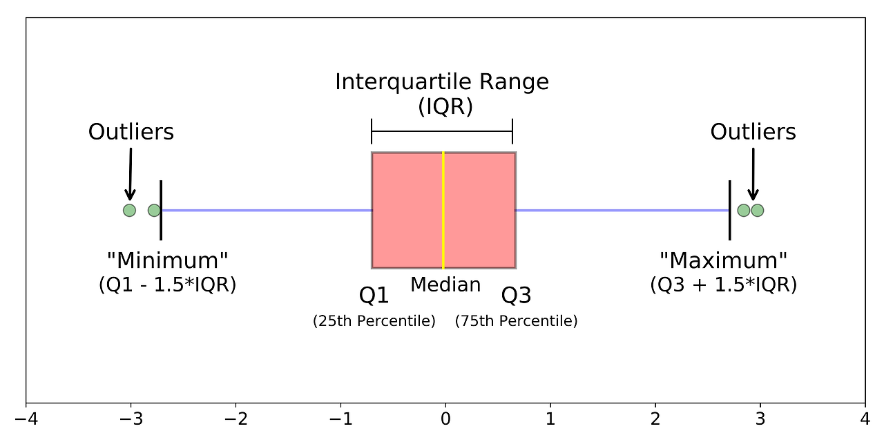 일반적으로 1.5 * IQR 범위를 벗어나는 값을 이상치로 간주한다.