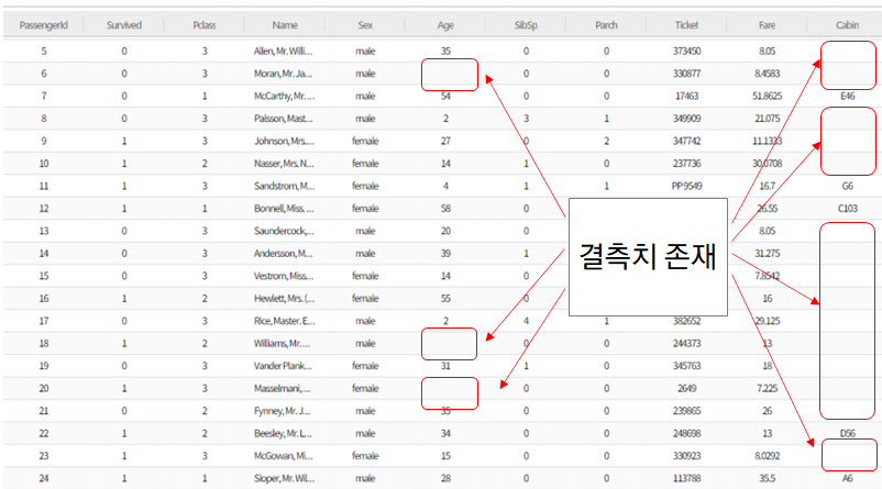 결측값이란 데이터셋에서 누락된 값을 의미한다. 결측치는 데이터가 수집될 때 특정 값이 기록되지 않았거나 손실된 경우 발생한다.