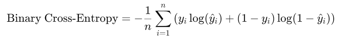 이진 교차 엔트로피는 이진 분류 문제에서 예측 확률과 실제 값의 차이를 계산한다.