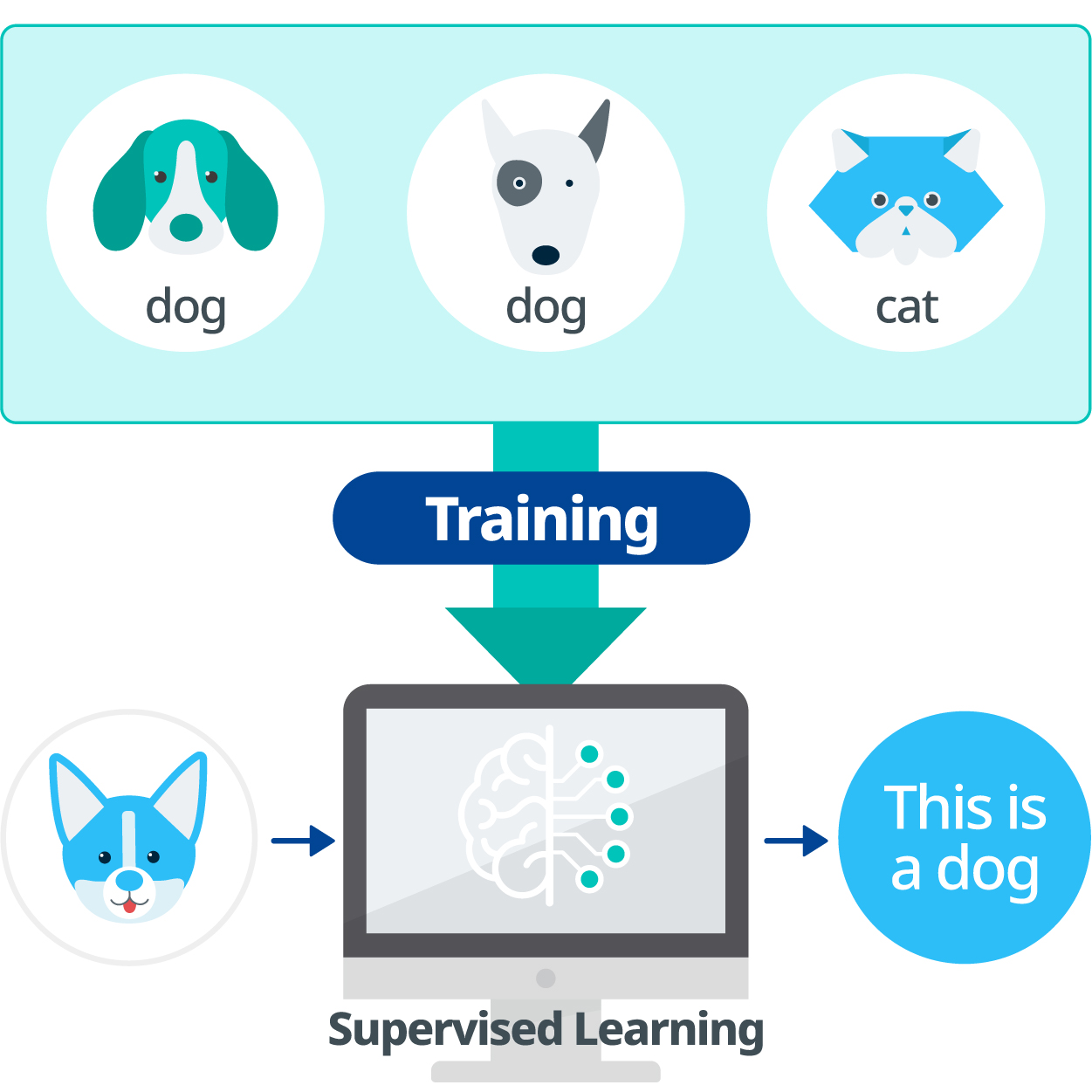 아래처럼 다양한 동물의 사진이 주어졌을 때, 해당 동물의 라벨도 같이 제공하여 학습시키는 것이다. 학습이 끝난 뒤에 새로운 동물 사진을 주면 모델은 지금까지의 학습을 기반으로 정답을 예측한다.