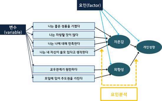 주성분은 데이터의 선형 결합으로 정의되며, 특정 변수 간의 관계나 잠재 요인을 직접적으로 해석하지는 않는다. 즉, 데이터의 구조를 간결하게 표현하는 데 초점을 맞춘다는 것이다.