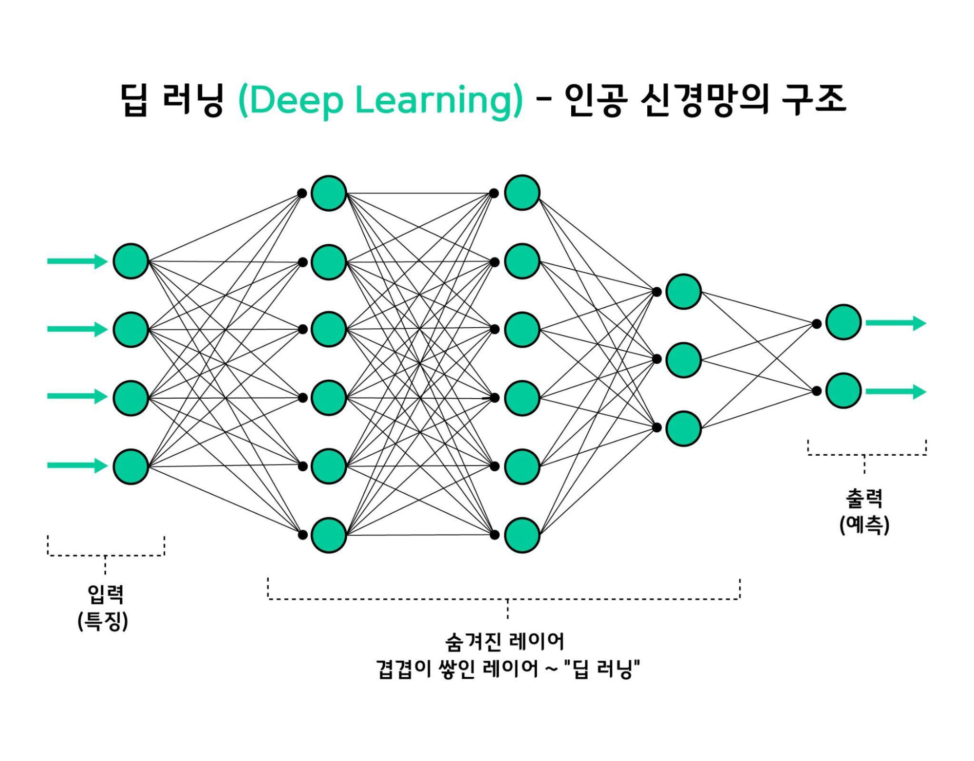 딥러닝은 머신러닝의 한 분야로, 인공신경망(Artificial Neural Networks, ANN)을 기반으로 한 학습 방법이다. 특히, 다층 신경망(Deep Neural Networks, DNN)을 사용하여 데이터의 특징을 자동으로 학습하는 것이 특징이다.