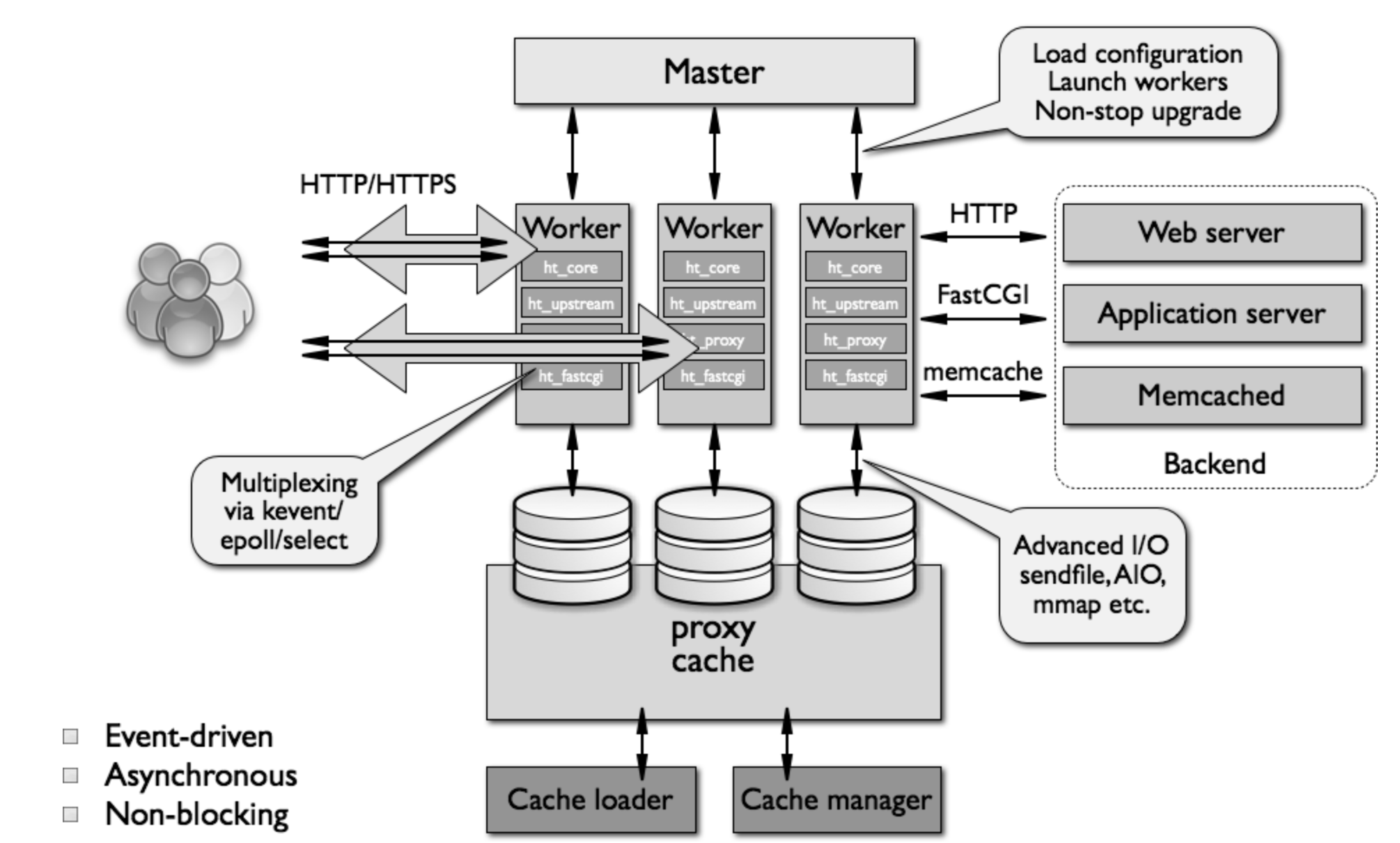 NGINX는 HTML, CSS 및 JavaScript를 사용하여 개발한 페이지를 렌더링하는 데 사용되는 웹 서버다. NGINX는 단일 스레드, 이벤트 중심 및 master-slave 아키텍처에 선호된다.