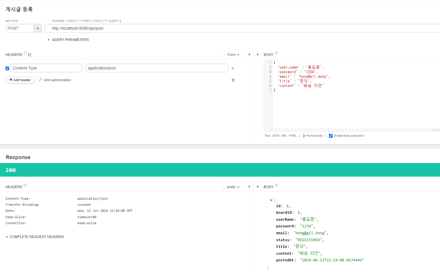 POST 요청을 하게되면 200 OK가 떨어진 것을 볼 수 있다.