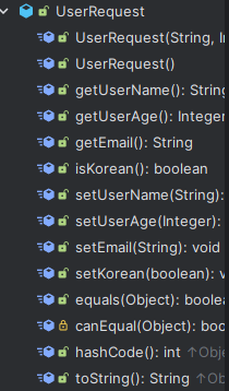 하지만 primitive type인 boolean은 getter 메소드를 만들 때 getKorean이라는 이름으로 생성하므로, json 요청의 key를 바꾸거나 reference type인 Boolean으로 변수 타입을 변경하는 것이 옳다.