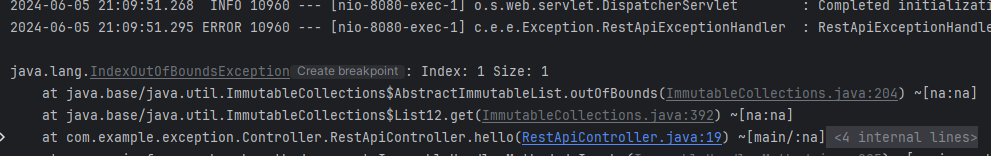 우리가 위에서 발생시킨 에러는 OutOfBoundException이므로