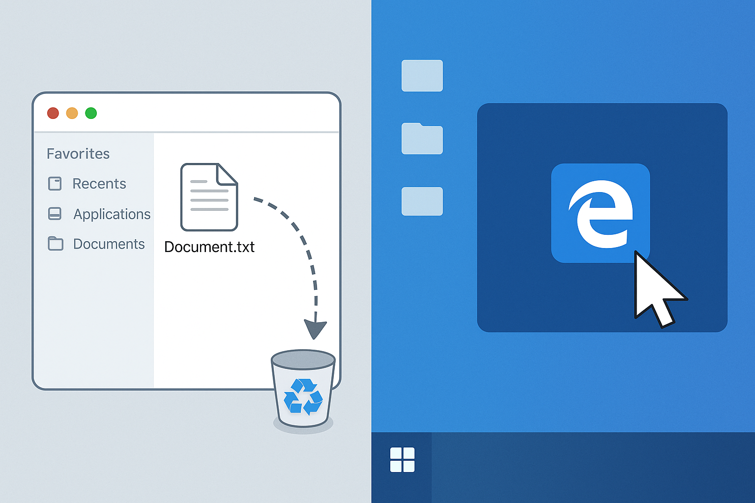 - 삭제할 파일을 마우스로 끌어 (드래그해서) 휴지통 아이콘 위에 놓으면 파일이 삭제됩니다.