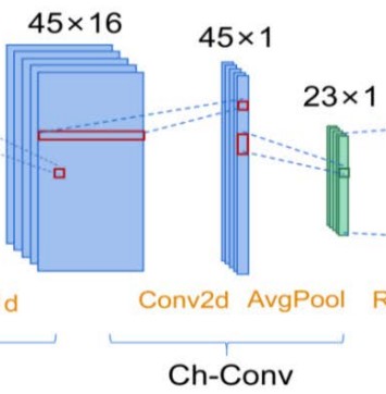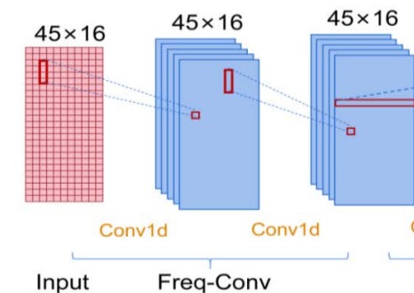이 논문의 1d conv layer에서는 한개의 채널마다 각각의 kernel이 저주파대역에서 고주파대역으로 이동하면서 주파수별 신호의 특징을 모은다. 이 과정을 수행하고 나면 크기가 16(필터의수)x45(주파수 정수)x16(채널의수)인 output이 나온다.