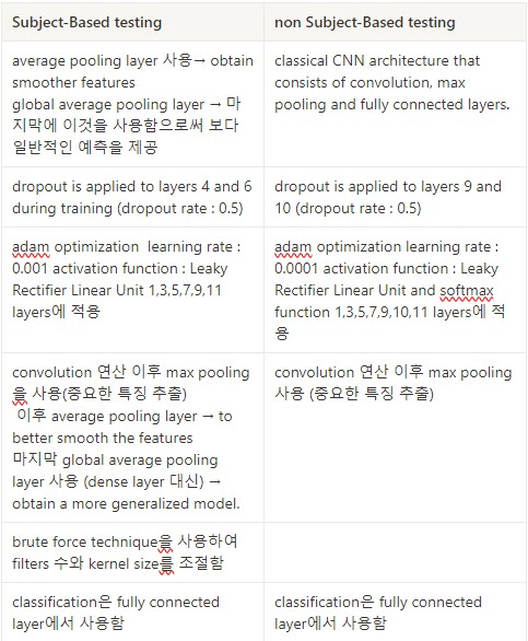 → non에서 학습과 테스트에 사용되는 세그먼트가 임의로 분할되고 이경우엔 대상이 실제로 구분되지 않아 subject based testing보다 더 정확한 결과를 보여주었다,