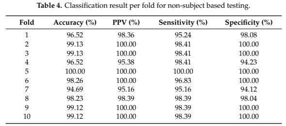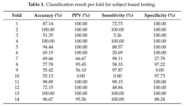 10 fold를 사용하는 non subject based testing이 14 fold를 사용하는 subject based testing보다 정확도가 높았다.