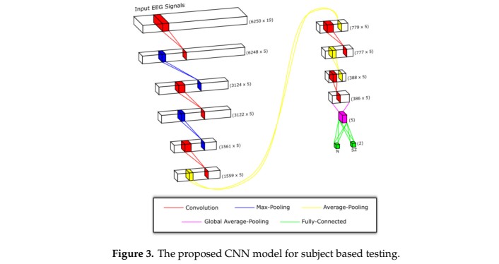 CNN은 이상한 EEG 신호를 식별하고 이러한 신호를 질병 진단에 활용하기 위해 가장 널리 사용되는 아키텍처이다. (ex depression, seizure, 주의력 결핍 장애, autism)