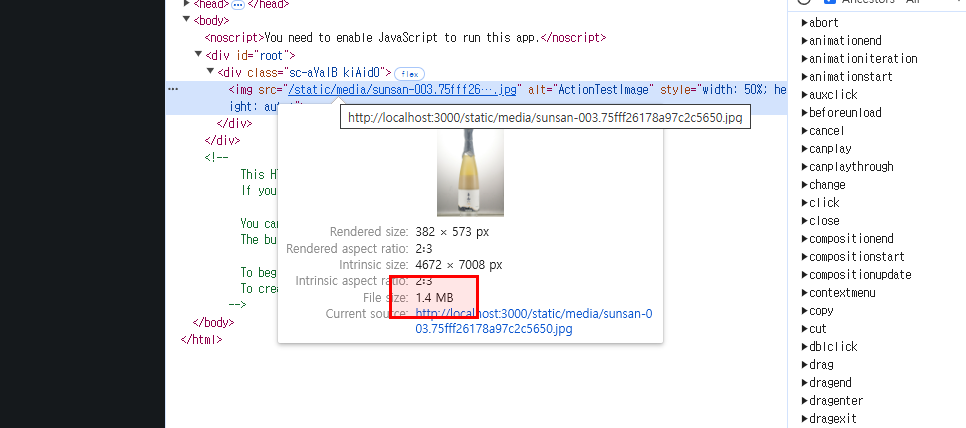 실제 이미지가 12.8MB임에도 불구하고 압축없이 해당 이미지를 그대로 홈페이지에 불러왔다. 이후 PR을 날렸을 뿐인데 알아서 1.4MB까지 압축해서 업로드되었다.