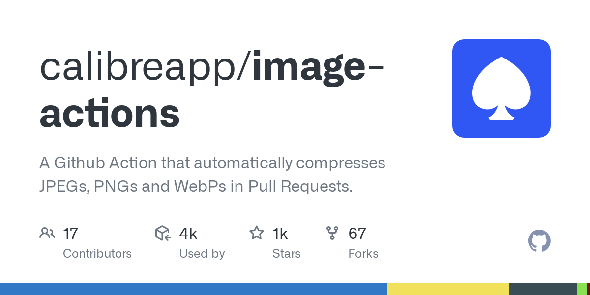 물론 직접 액션을 작성해도 좋지만, 라이브러리와 같이 미리 만들어져있는 액션들을 가져다 쓸 수 있다. 그 중 하나가 이번 글에서 시도하고자하는 calibreapp의 image-actions이다.