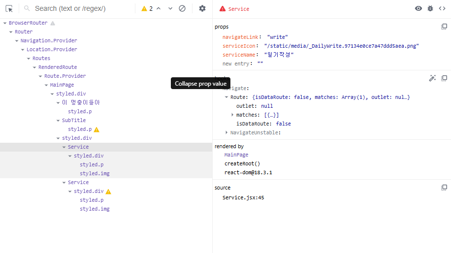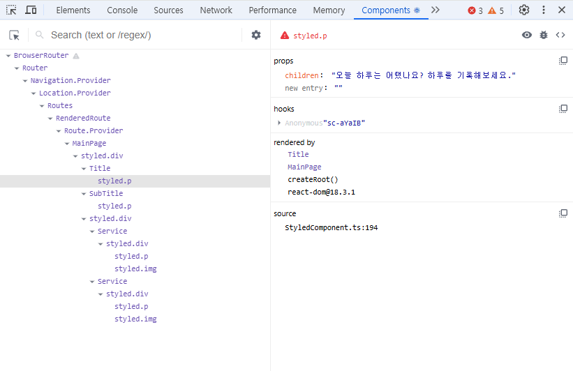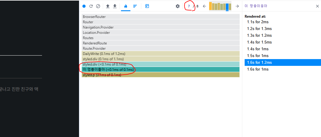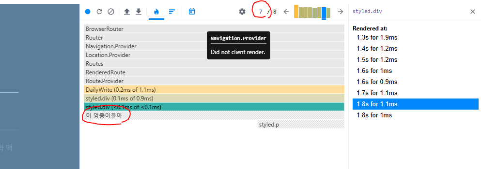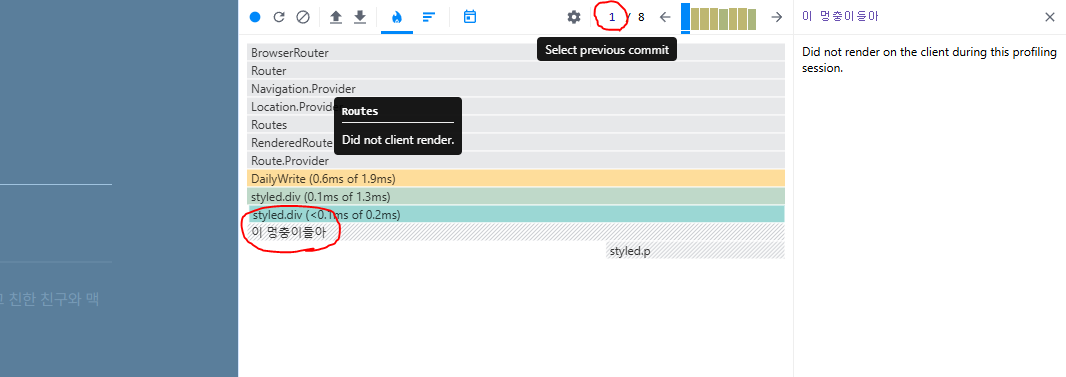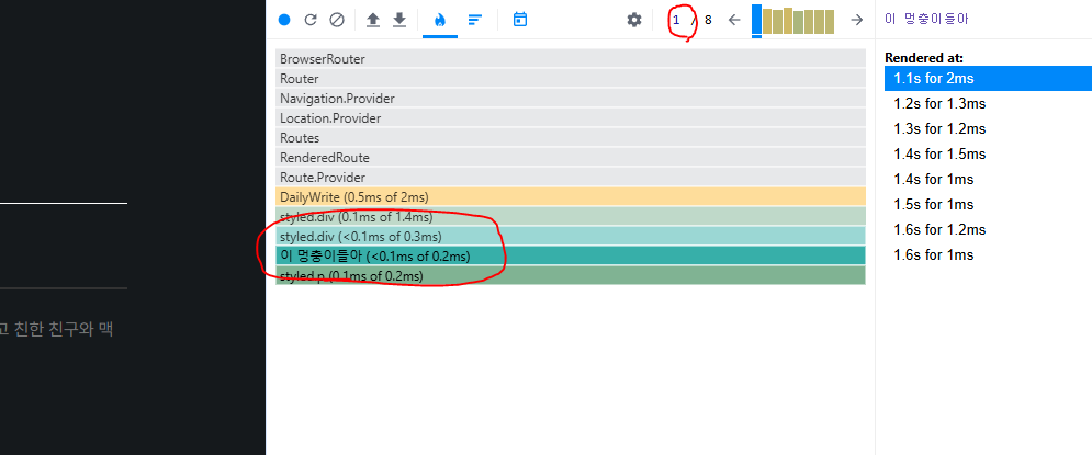 그러나, 리액트 개발도구를 통해서 실제 내 졸업작품의 렌더링 과정들을 살펴보니 조금 더 수월하게 이해가 갔다.