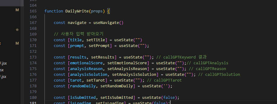 이유는, input의 value값을 저장하는 데이터가 DailyWrite에 선언되어있기때문에 state가 변경되면 전체가 렌더링 된다.