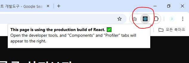 개발 도구를 설치해야하는데 어렵지 않다. 크롬의 경우 확장 프로그램을 설치하면 된다. 설치를 완료하면 우측 상단에서 확인할 수 있다!