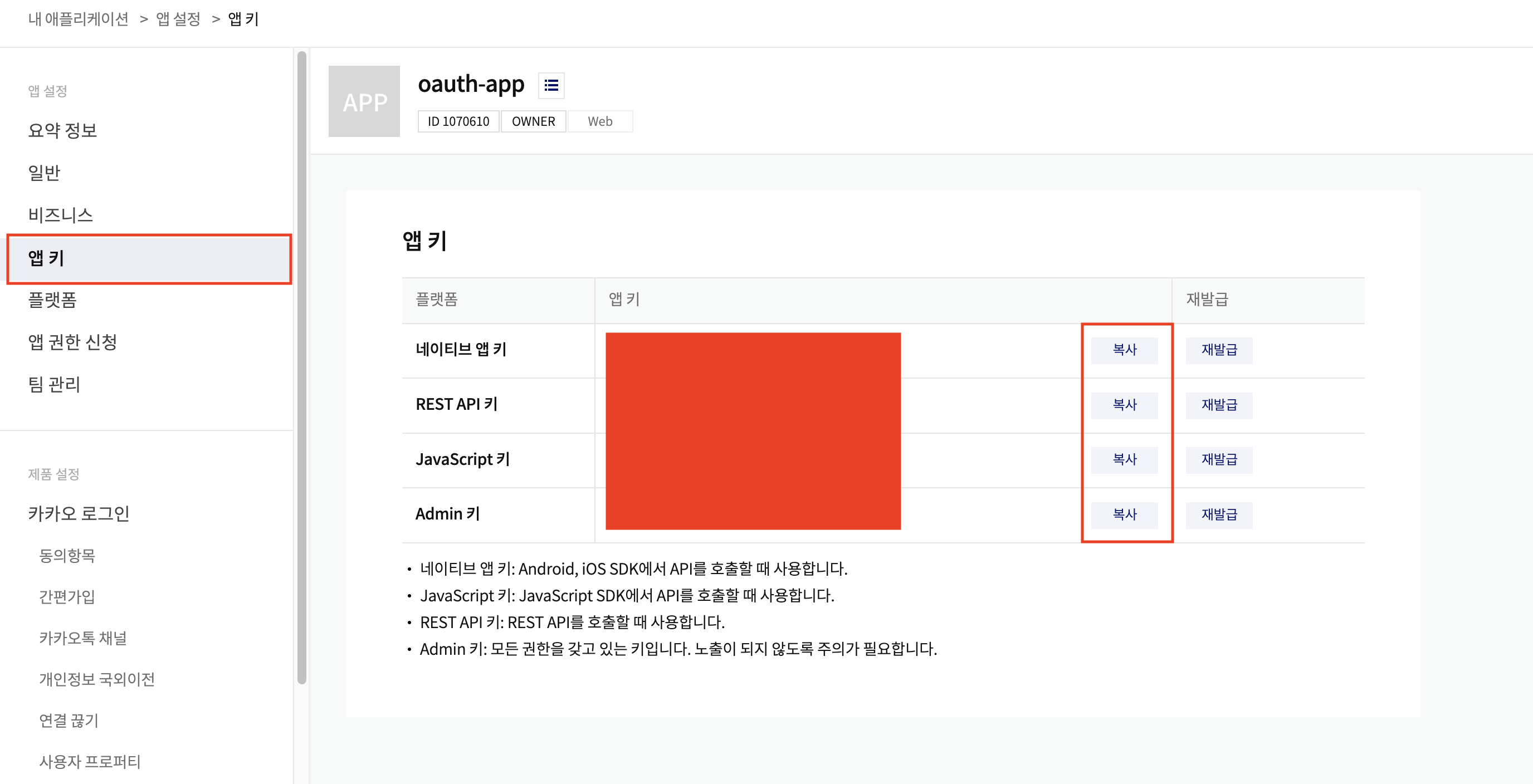 앱 설정 > 앱 키 화면에서 Client 키를 확인하고 복사해서 사용하면 됩니다.