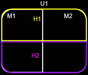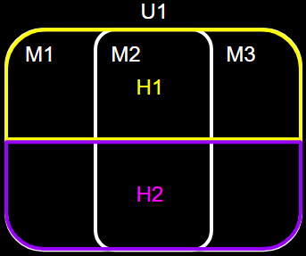 어느 지역에서 U1대학에 다니는 학생의 출신 중학교와 고등학교를 조사했다. 단 3개의 중학교 M1,M2,M3만 존재했고 단 2개의 고등학교 H1,H2만 존재했다. 아래와 같은 발상이 가능하다.
