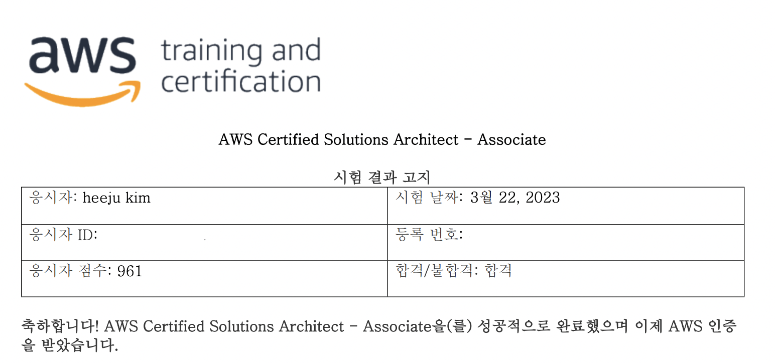 720점만 넘으면 됐었는데 961점이라니?!! 너무 감사드립니다 aws~