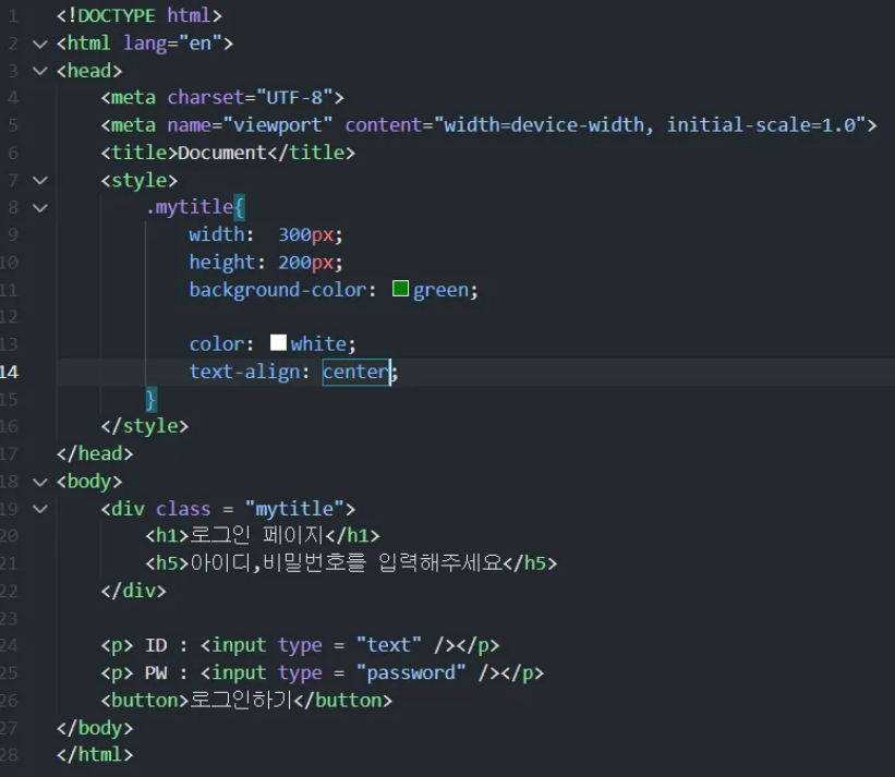 style은 HTML 내에서 CSS를 정의하는 것으로 .mytitle클래스에 스타일을 지정할 수 있다.