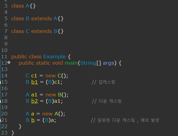 하지만 업캐스팅과는 달리 18행의 (B)a1; 에서 (B)는 생략 할 수 없고