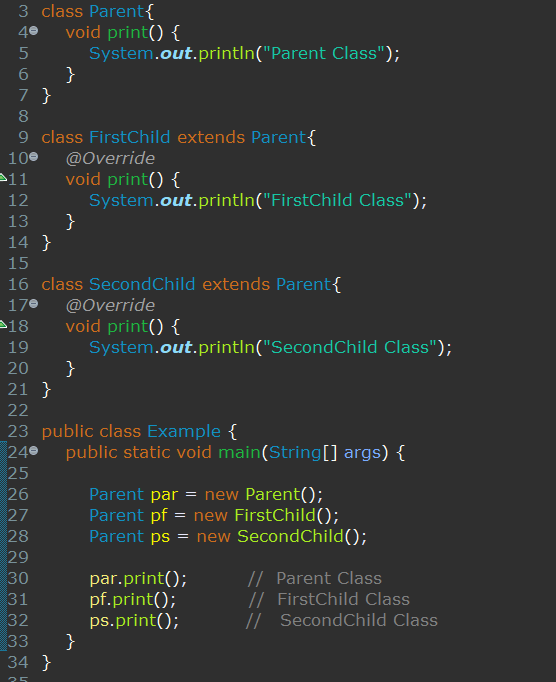 이는 컴파일러가 클래스 A를 직접 상속받아 print( ) 메서드를 오버라이딩한