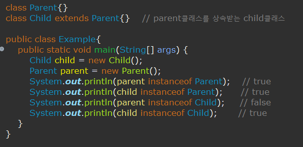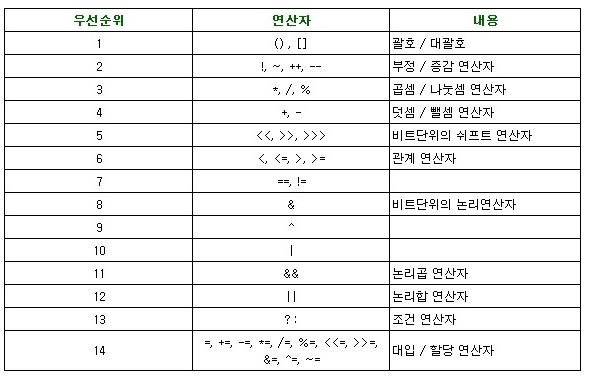 주로 연산 결과가 boolean인 논리 연산자와 비교 연산자가 위치한다.