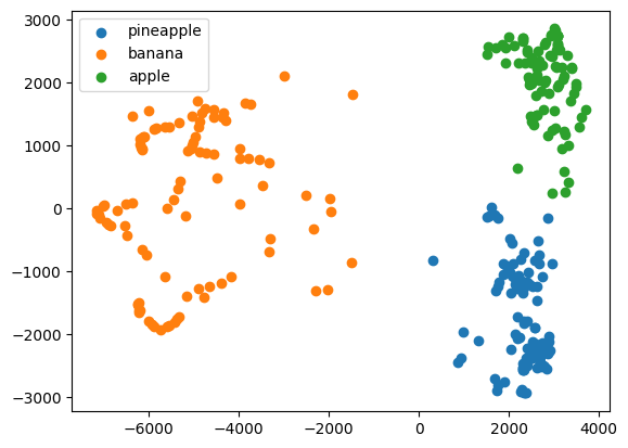 -.reshape를 사용해서 (100, 100, 100)이던 apple / pineapple / banana