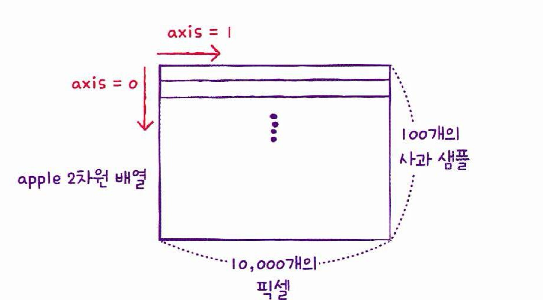 apple = fruits[0:100].reshape(-1, 100*100) # 과일 100개씩 있음