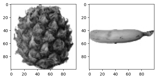 axs[1].imshow(fruits[200], cmap='gray_r') # 200번째 사진