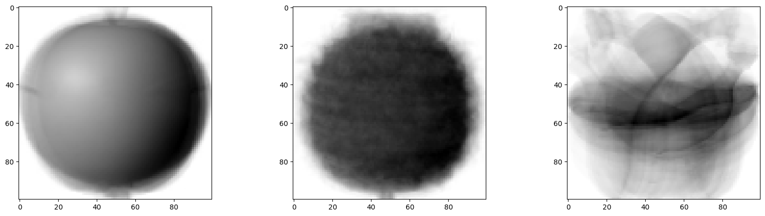 axis=0으로 픽셀마다 샘플의 평균값 계산fig, axs = plt.subplots(1, 3, figsize=(20, 5))