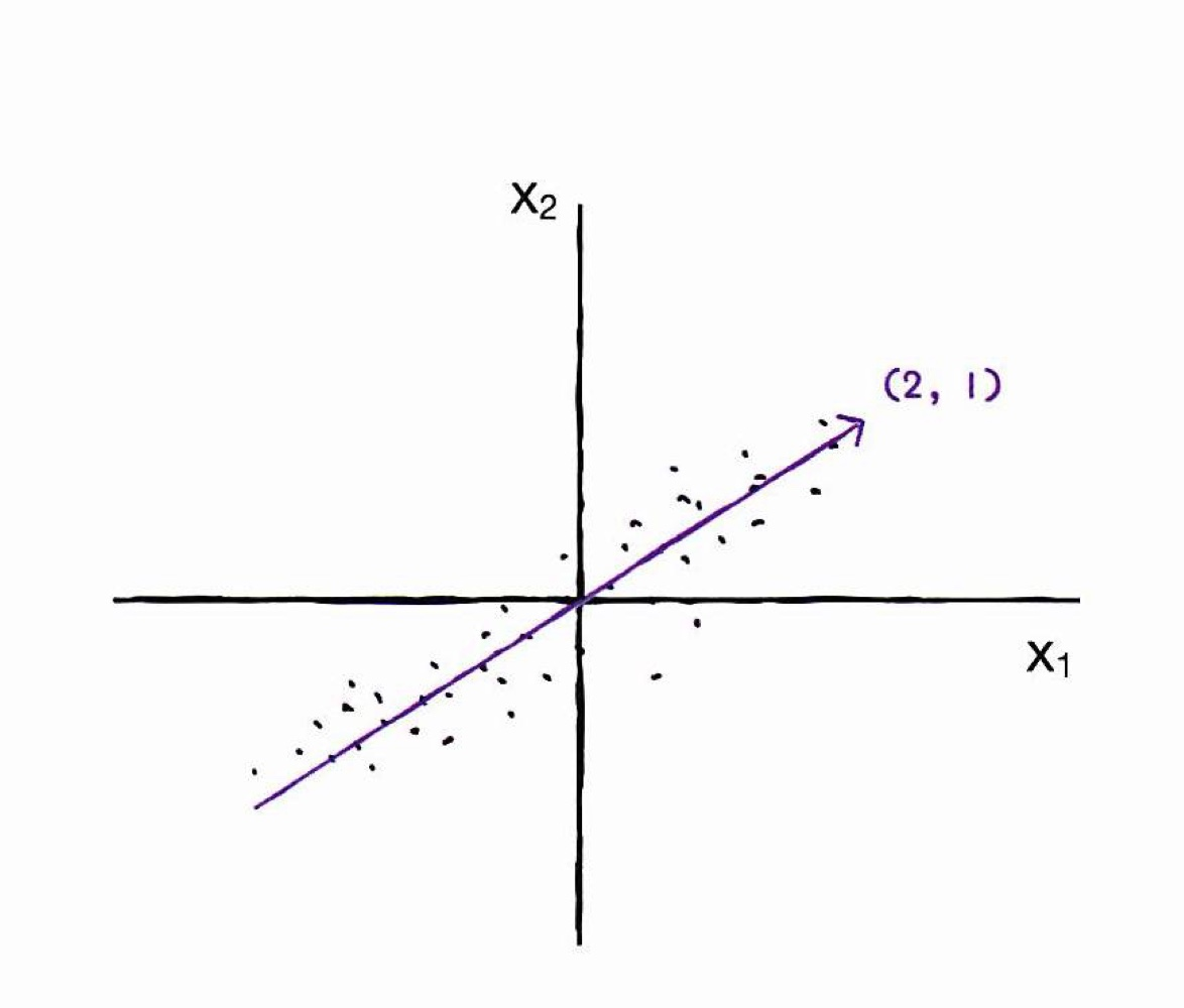 위 직선을 원점으로 옮기면 벡터로 표현하기 쉬워지고, 이 벡터 (2,1)이 주성분이 됨