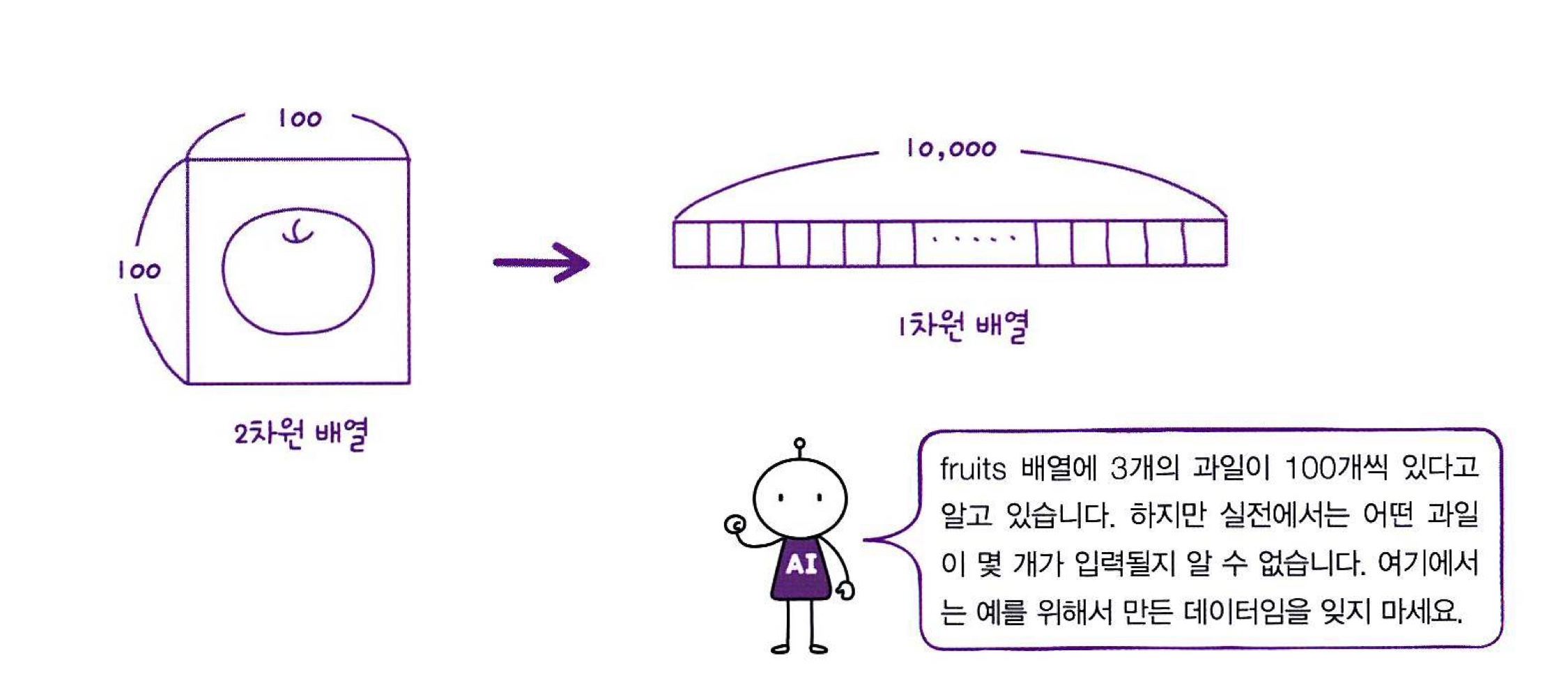 pineapple = fruits[100:200].reshape(-1, 100*100) # 다 하나하나 길게 펼쳐줌